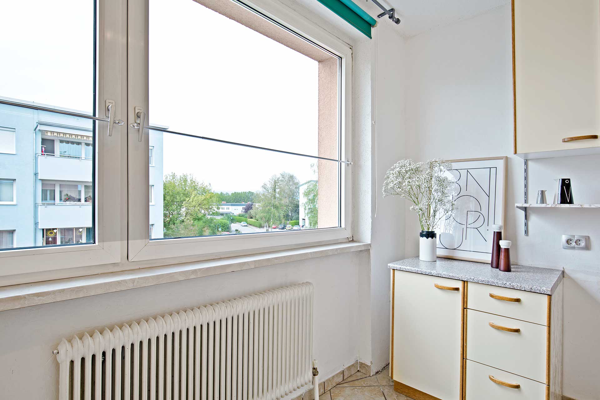 Diese ca. 92 m2 große Eigentumswohnung wurde 1970/72 erbaut und befindet sich im 2. Stock eines Mehrparteienhauses.