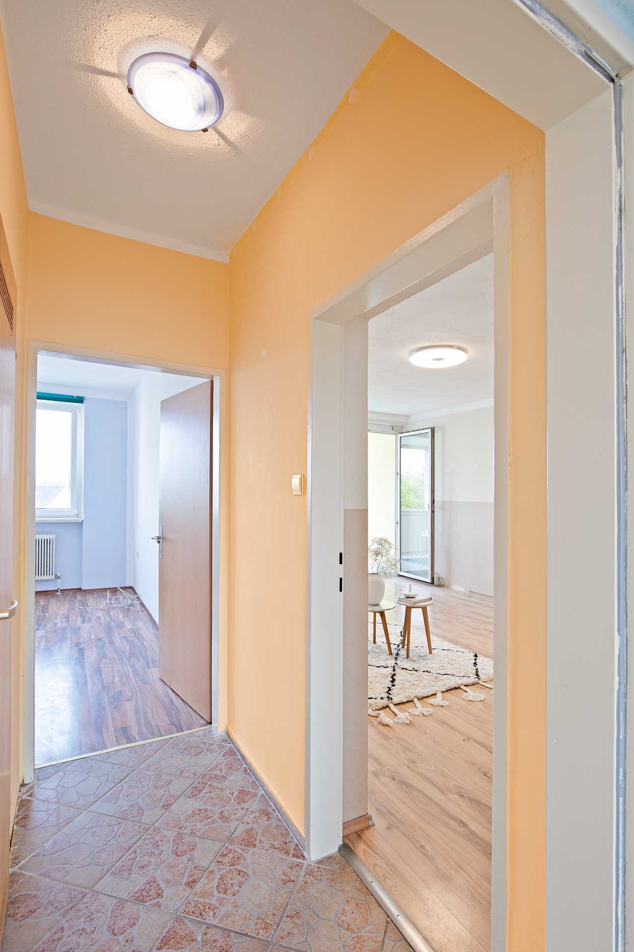 Teilweise sind die Räume schon renoviert, und mit neuen Böden ausgestattet.