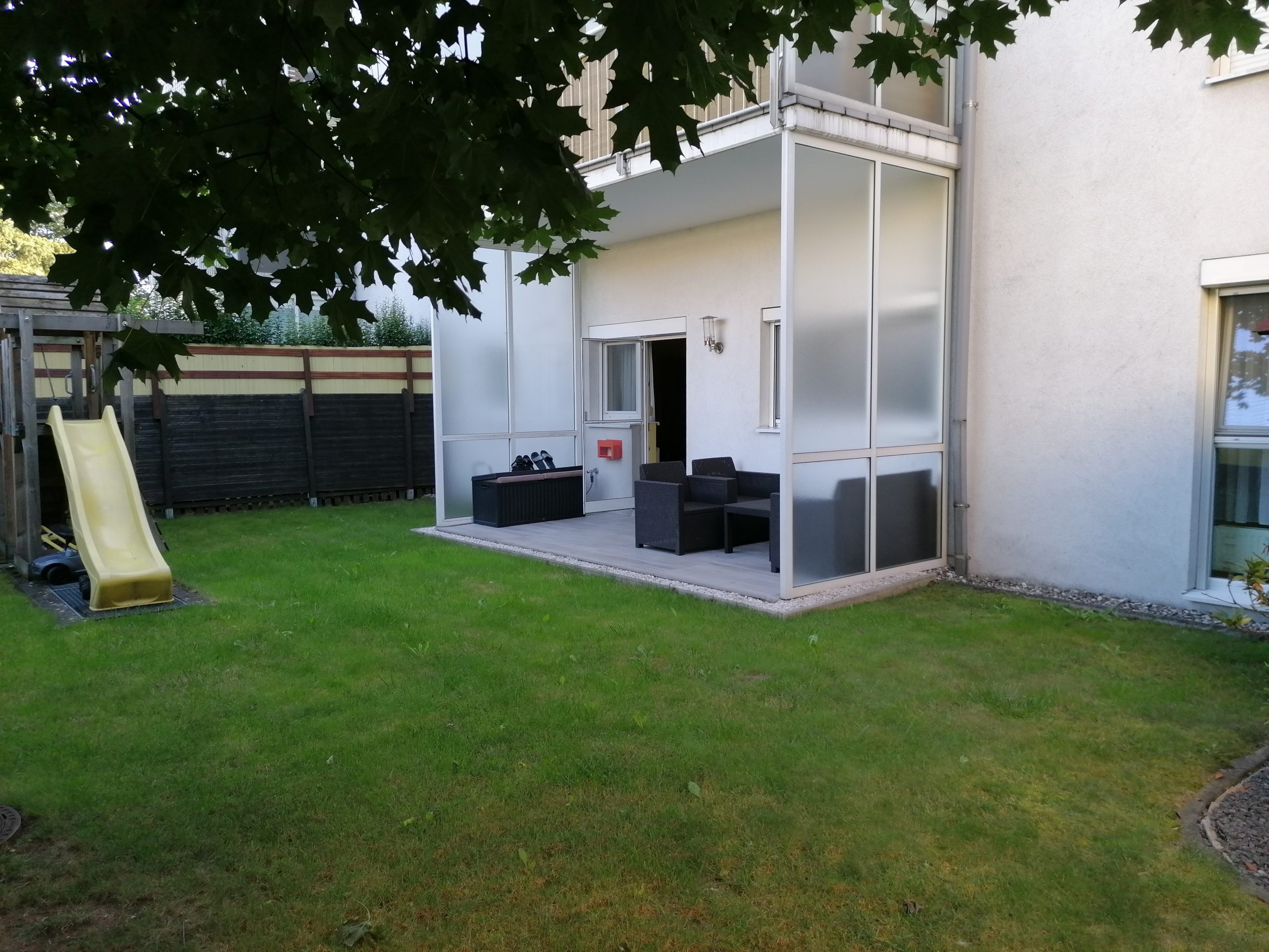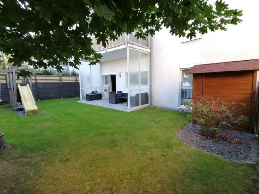 Vom Hauseingang bis in die Wohnung und durch die überdachte Loggia bis in den schönen Garten, haben Sie hier alles auf einer Ebene