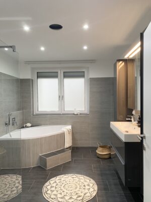 Badezimmer mit Badewanne und Dusche