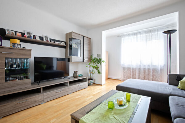 Das großzügige helle Wohnzimmer wurde 2015 neu gemacht und bietet auch genügend Platz für Ihr Home Office. Außerdem verfügt das Haus im EG über einen kleinen Vorraum mit Garderobe, Kellerzugang, ein Gäste-WC und ein Schlafzimmer.