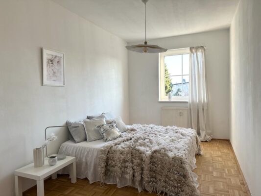 Das Schlafzimmer bietet ausreichend Platz für kreative Ideen zur Umgestaltung und kann zu einer ruhigen und behaglichen Wohlfühloase werden.