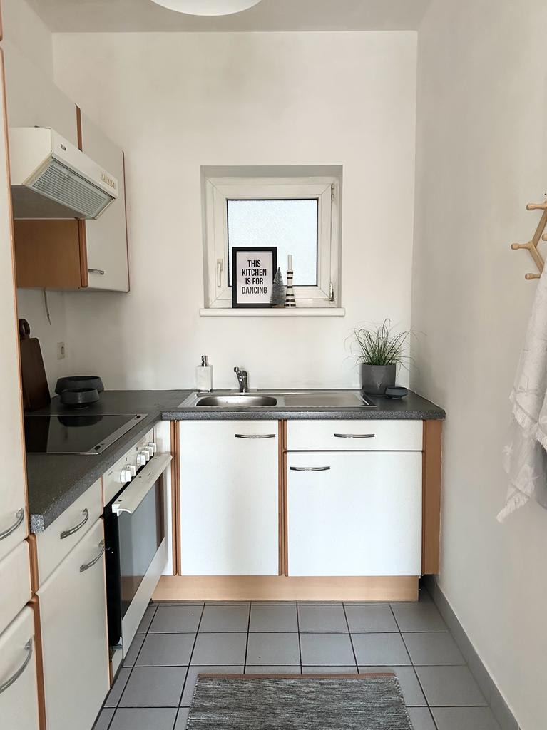Der Wohnbereich, verfügt über gute Proportionen und ein gemütliches Ambiente, die Küche ist separat und mit einer Lüftungsmöglichkeit.